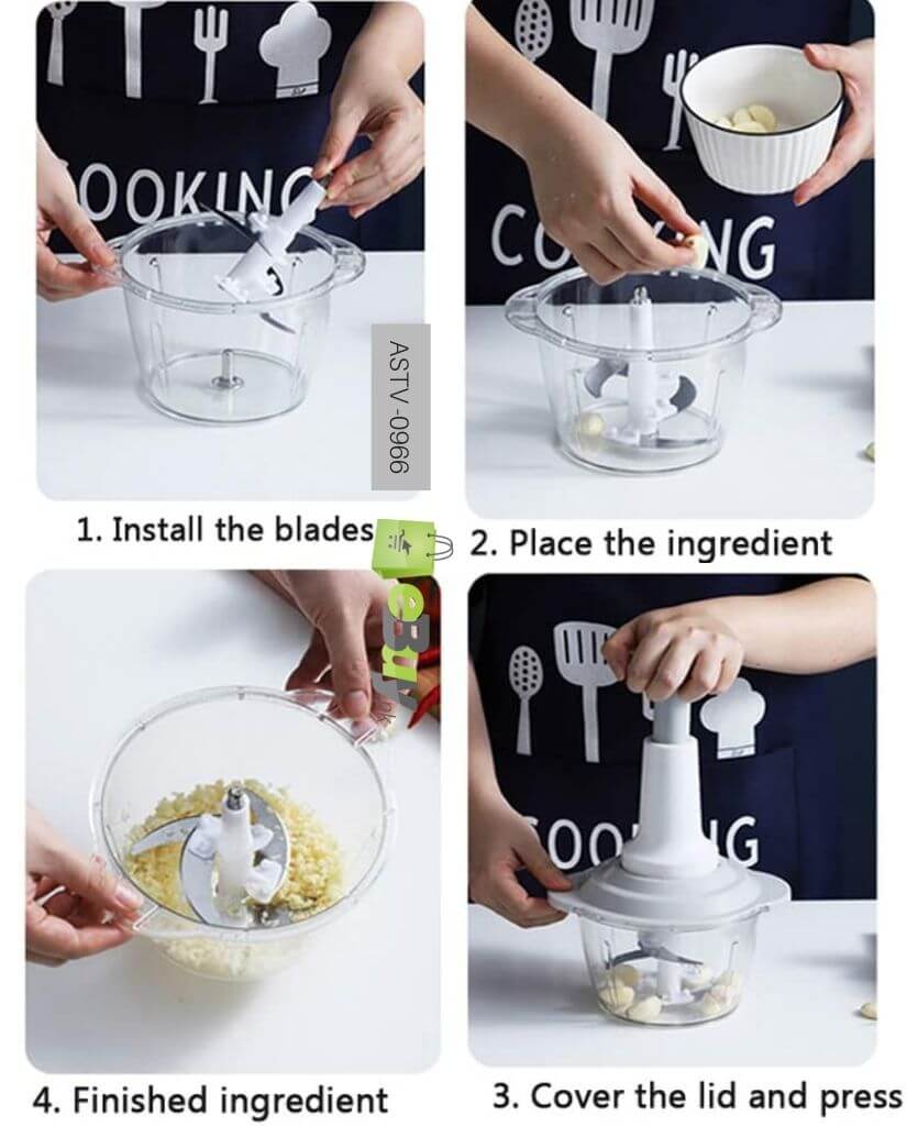 Hand Press Mechanism: Easy-to-use pump design for effortless chopping, mixing, and mincing without electricity.